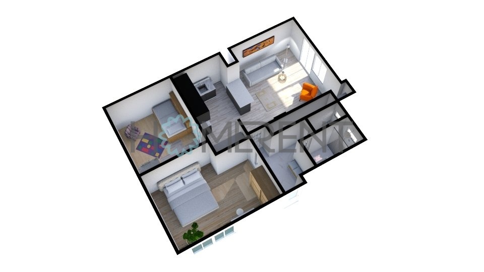 Interiér působí vzdušně a útulně. Dominantou je prostorná kuchyňská linka navazující na obývací pokoj, která vytváří příjemné srdce celého bytu – místo, kde se setkává rodina i přátelé. Moderní koupelna je vybavena sprchovým koutem, byt má také samostatnou toaletu. Pokoj s kuchyňským koutem má velikost 28 m², druhý pokoj 14m², třetí pokoj 19m², koupelna 2 m², samostatné WC 1m² a chodba 4 m².