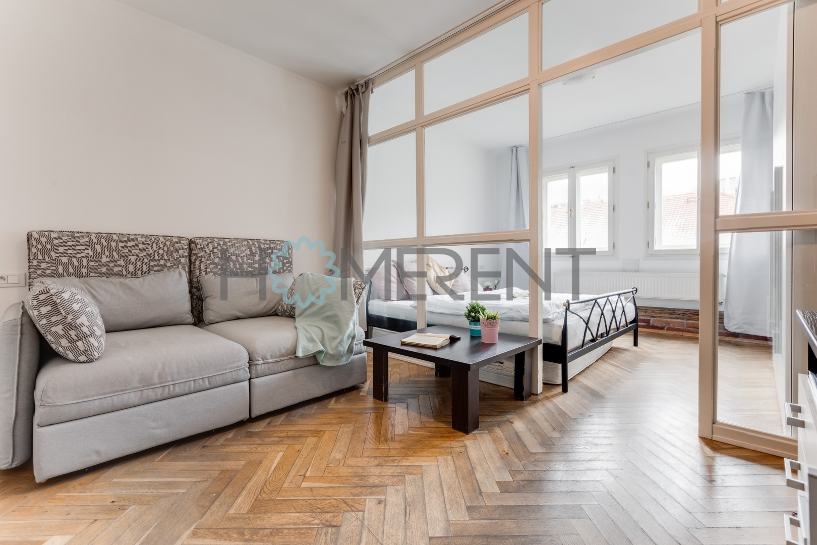 Nabízíme k pronájmu útulný a zařízený byt o dispozici 1+1, který je díky svému vnitřnímu uspořádání fakticky řešen téměř jako 2+1. Byt se nachází v 5. patře klasického činžovního domu s výtahem na ulici Plzeňská, přímo u zastávky Bertramka.